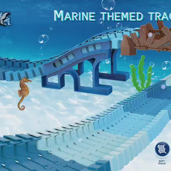 This complete race track kit includes 160 flexible track pieces and exciting accessories such as a shark racing car, tunnels, slopes, bridges, turntable, sea animals, plants, and barrier doors. Children can freely connect and rearrange the tracks to create their own unique underwater racing world.
